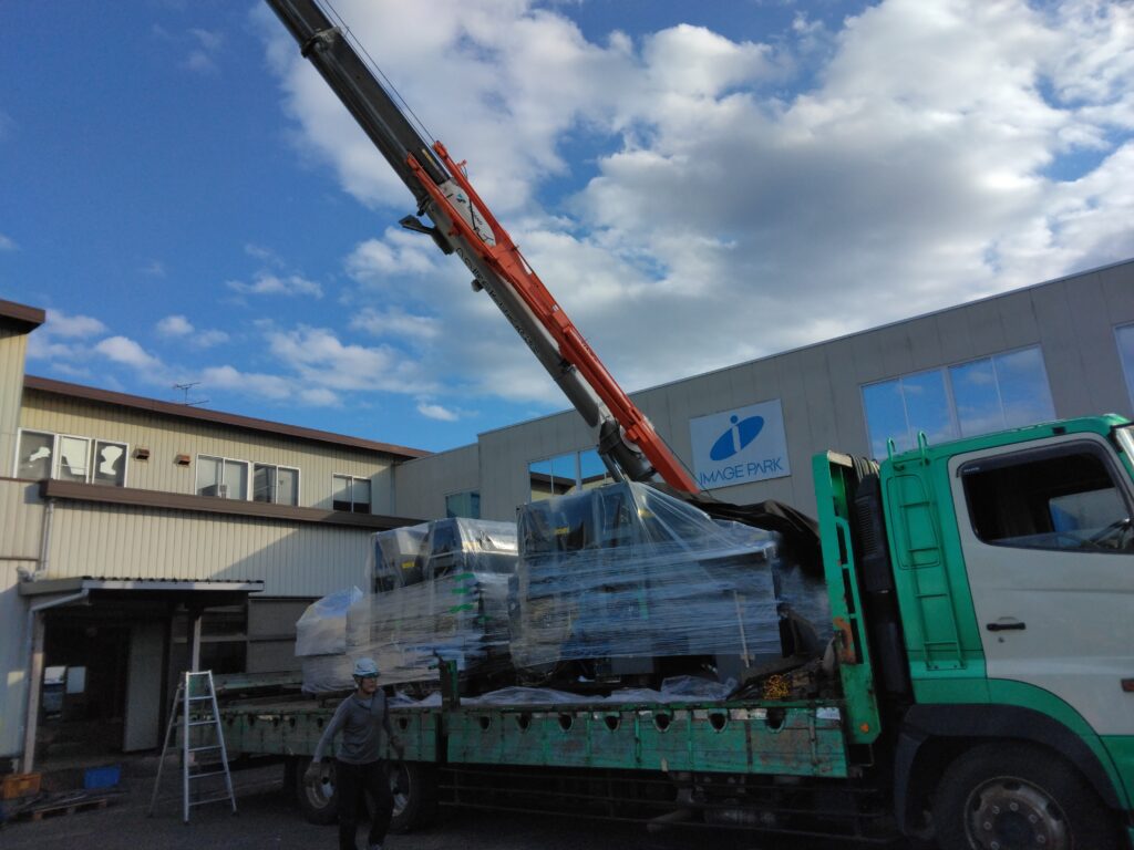 印刷機が大型トレーラーに積み込まれました。 10月23日 印刷機が搬出され大型トレーラーに積み込まれました。これから印刷機を目にすることは無いのかもしれません。長い間活躍してくれてありがとうございます。 ↑記事を見たり、いいねと思ったら、ハートマークを押してください